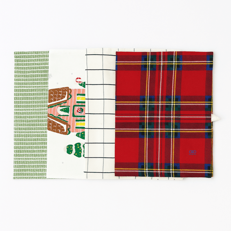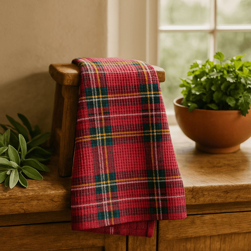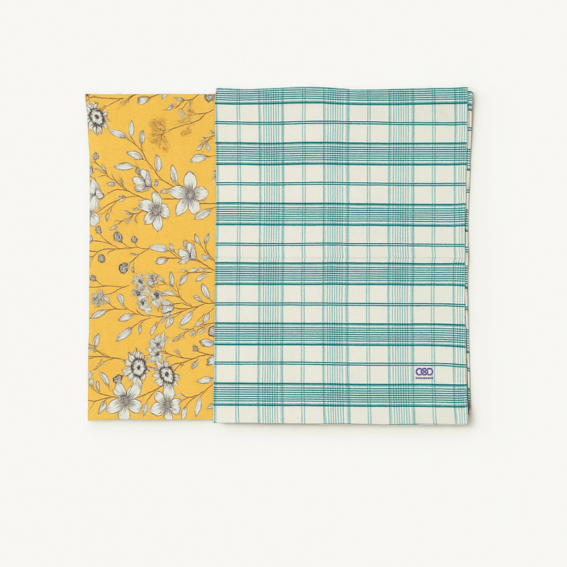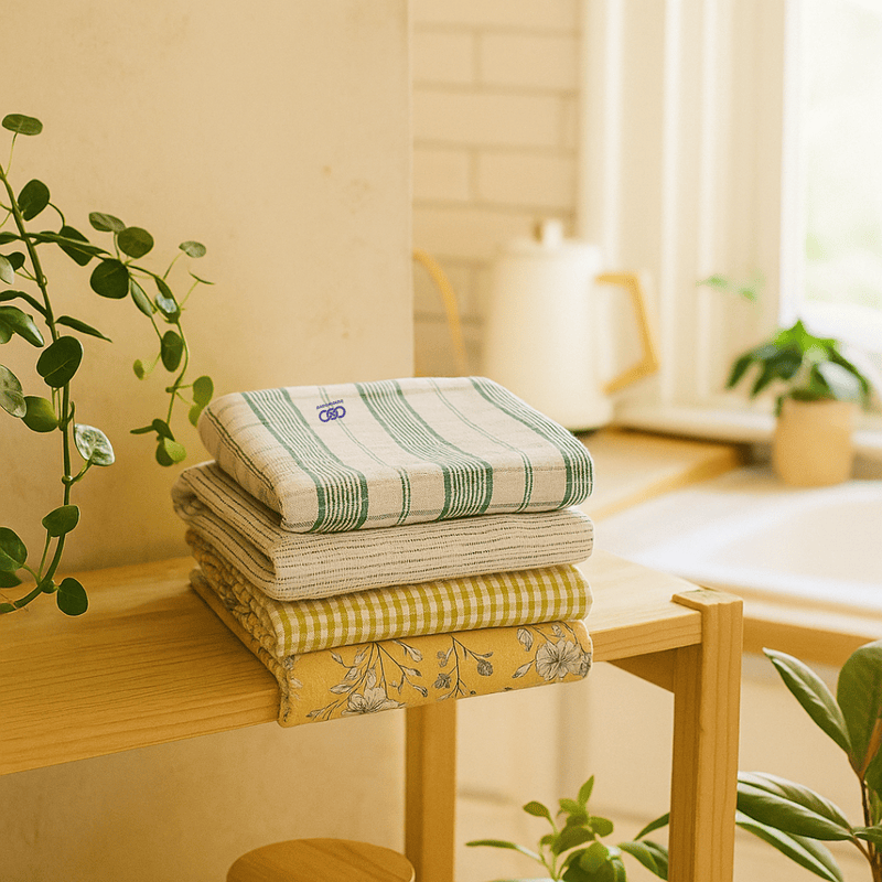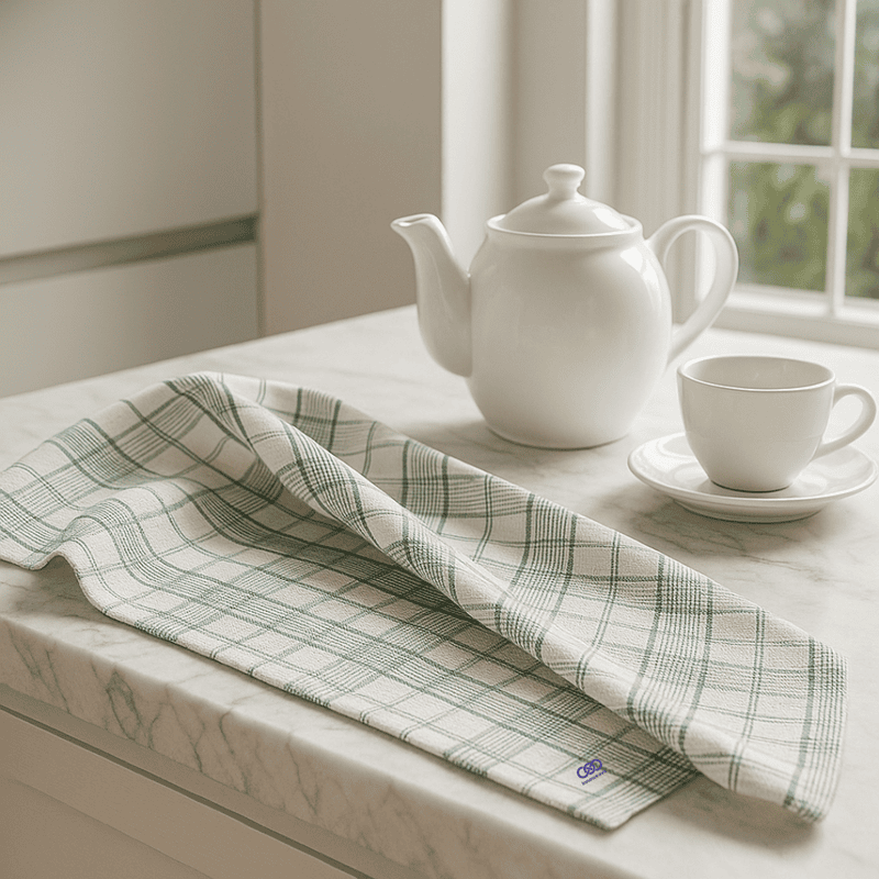 A versatile set of 4 cotton kitchen towels featuring floral prints, classic checks, and elegant solids — soft, absorbent, and designed to brighten every kitchen task.