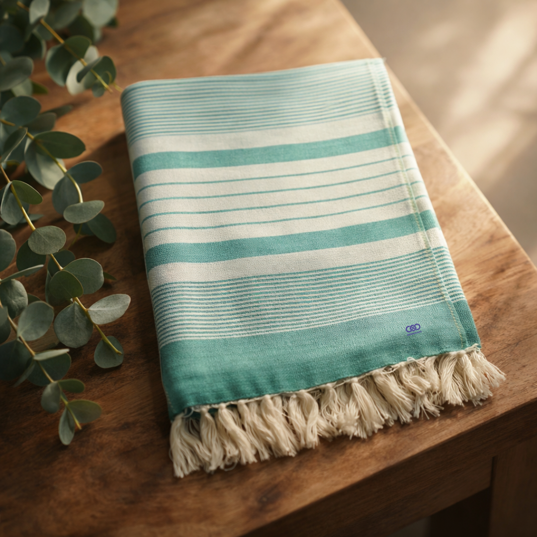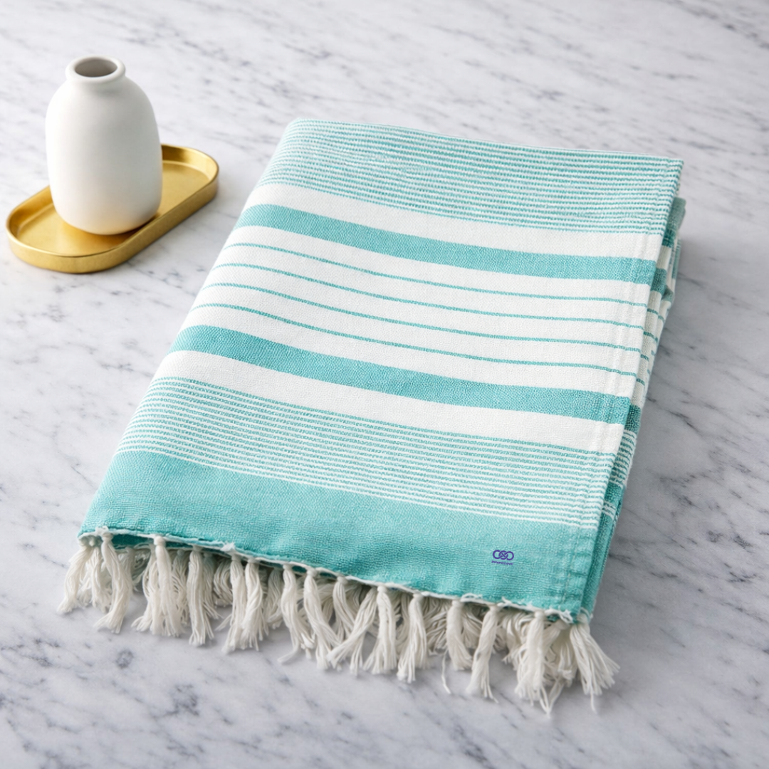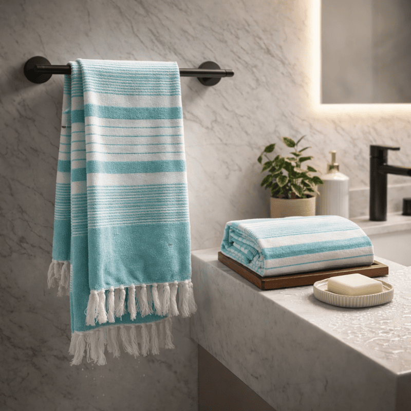 Whether placed in a modern bathroom, packed for travel, or used after a refreshing shower, the Sky Comfort Signature Stripe towel adds a refined and premium touch to your daily lifestyle.