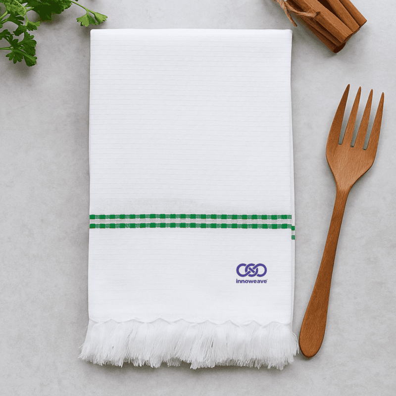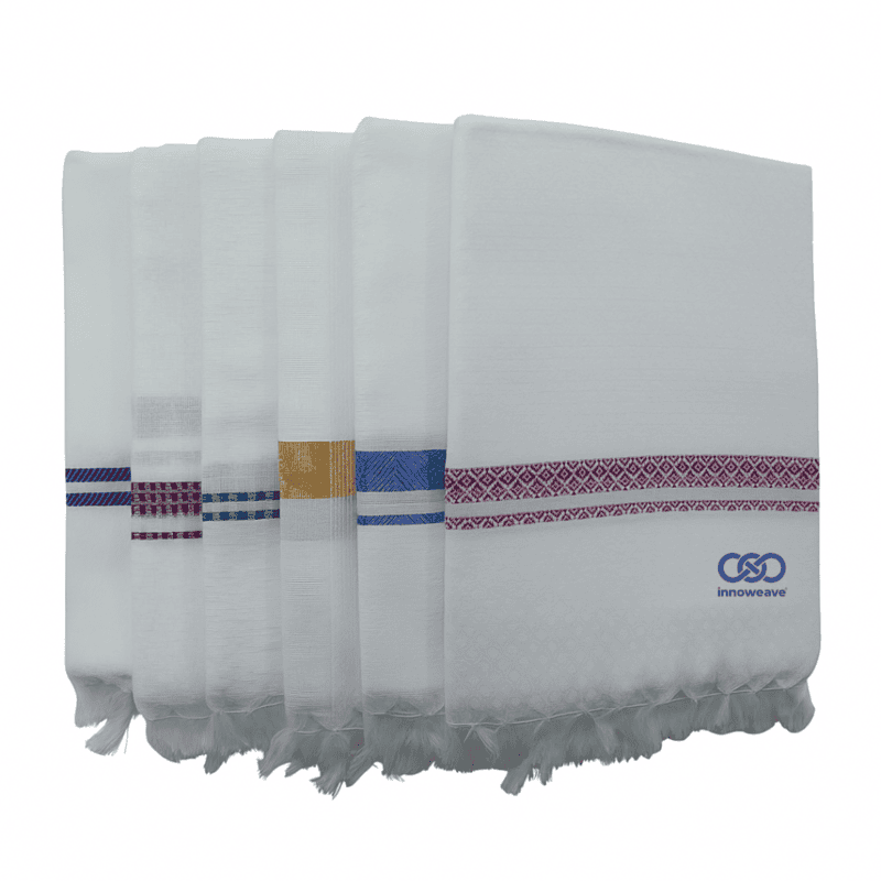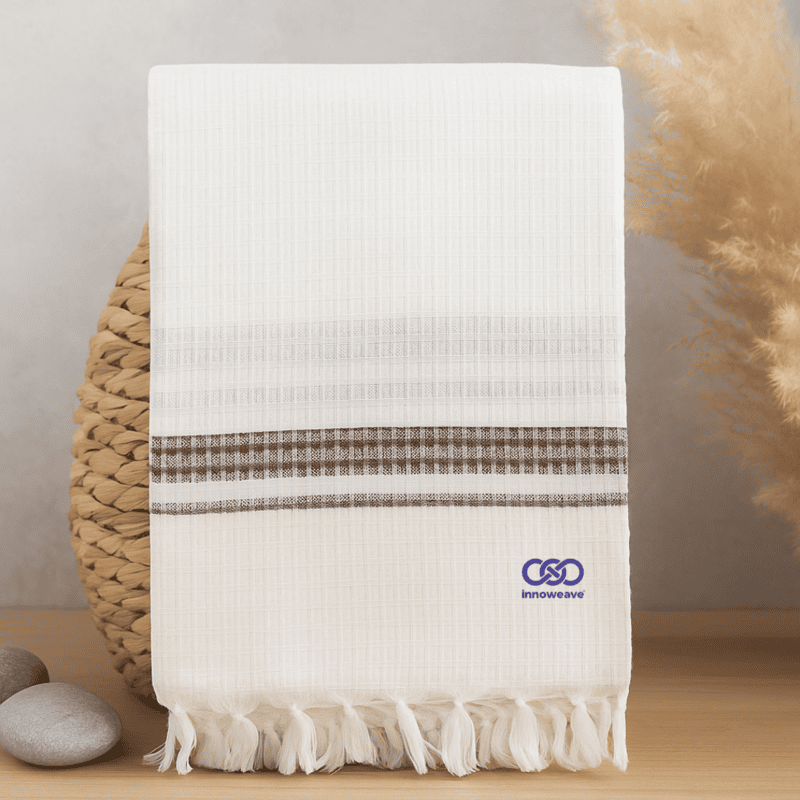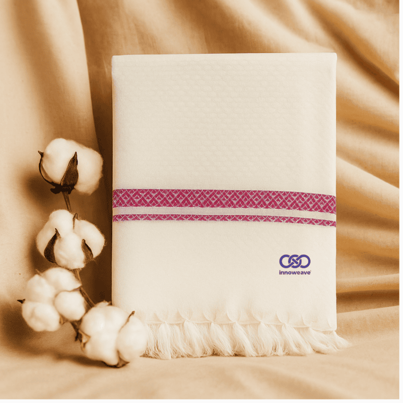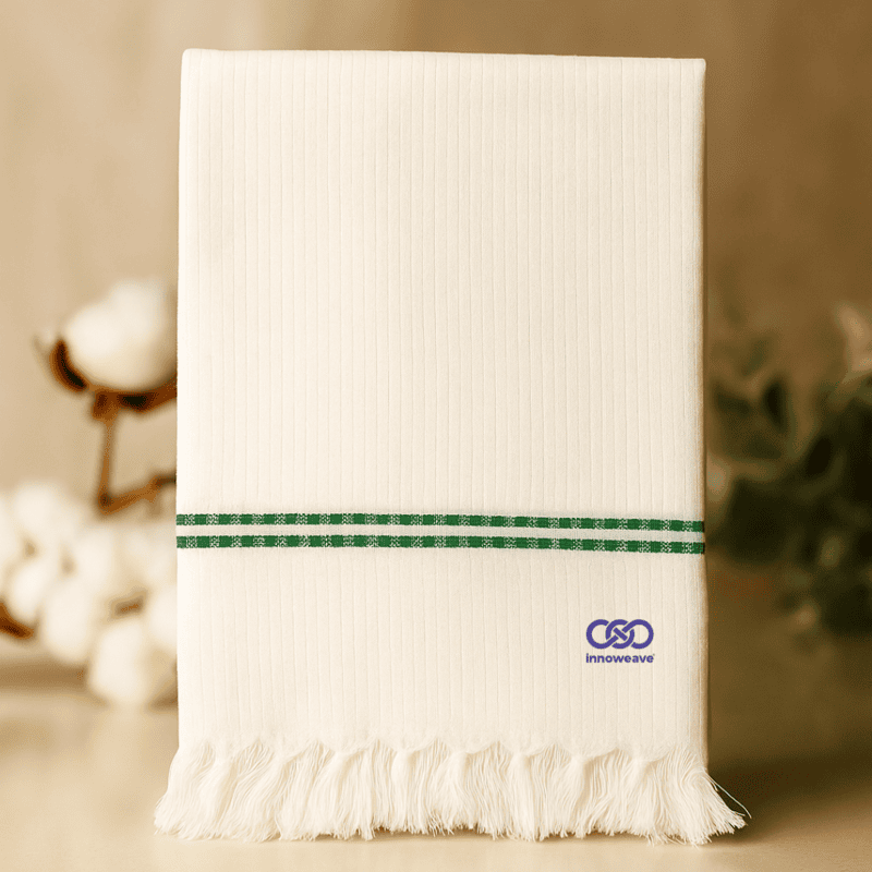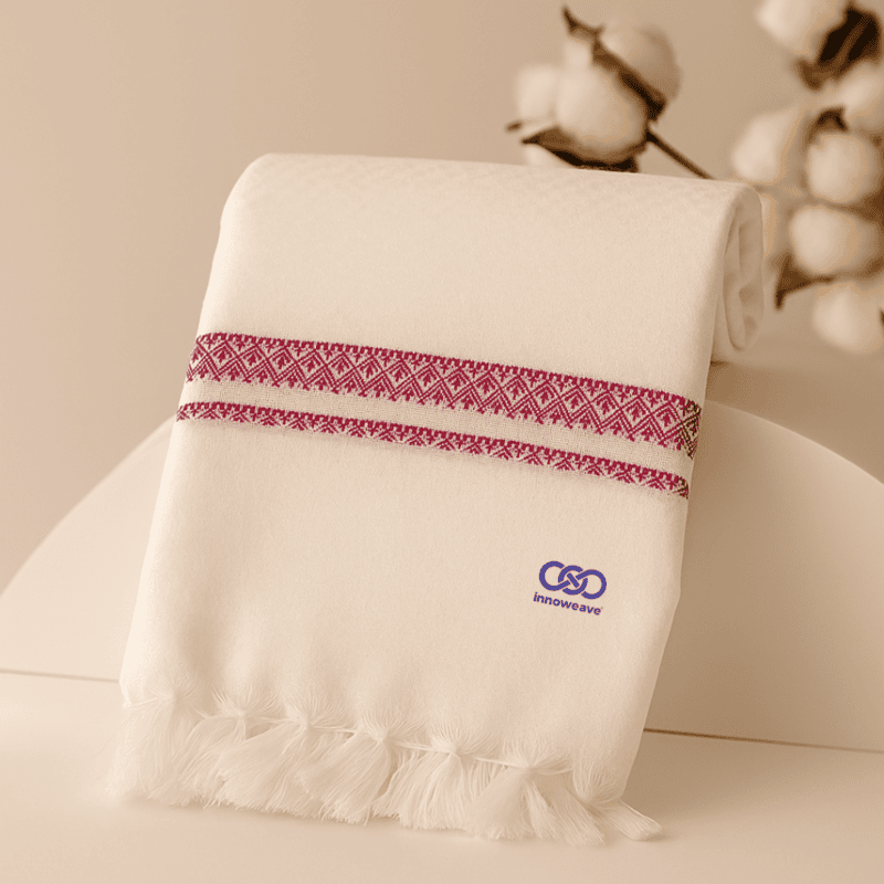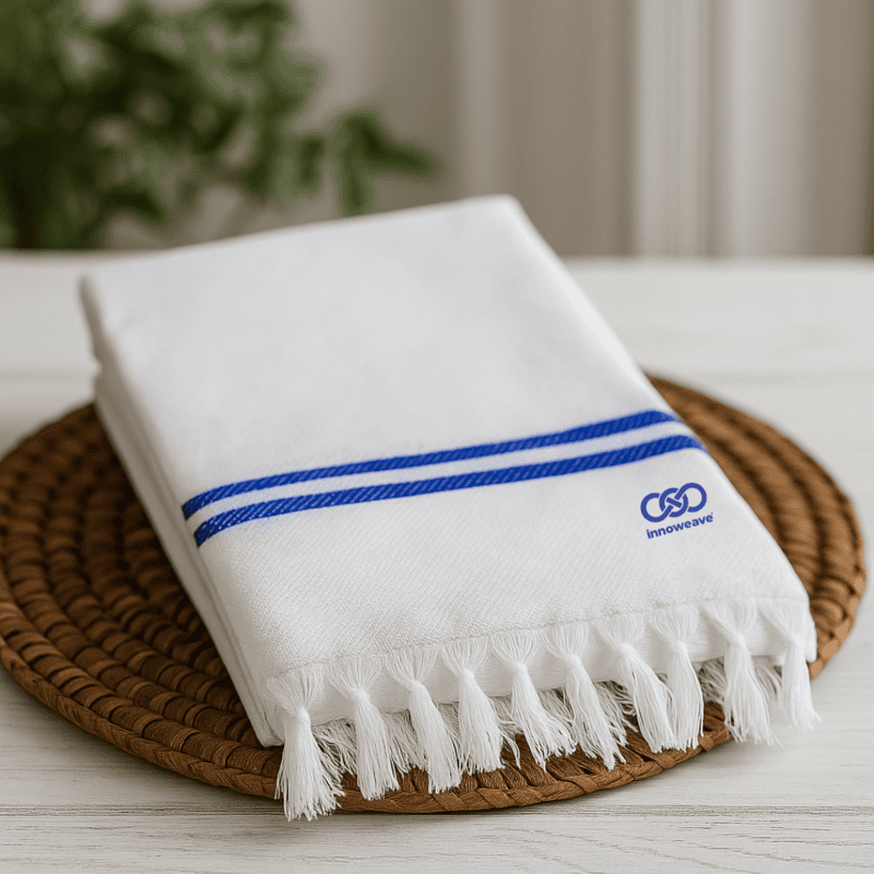 Soft, plain white cotton towels in elegant dobby weave with tassel finish — lightweight, absorbent, and timeless for everyday use.