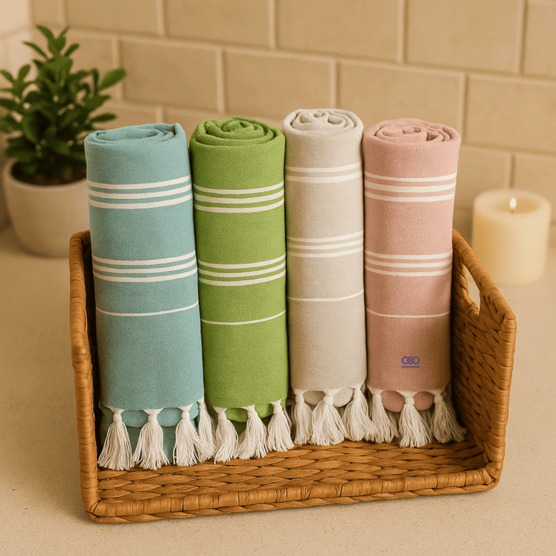 Introducing the EcoStripe Bath Towel — a simple yet elegant towel made for everyday use. Handloom-woven from 100% pure cotton yarn, this towel features classic horizontal stripes and neat tassel fringes. Its ultra-lightweight texture allows it to dry quickly while remaining highly absorbent and soft on the skin.